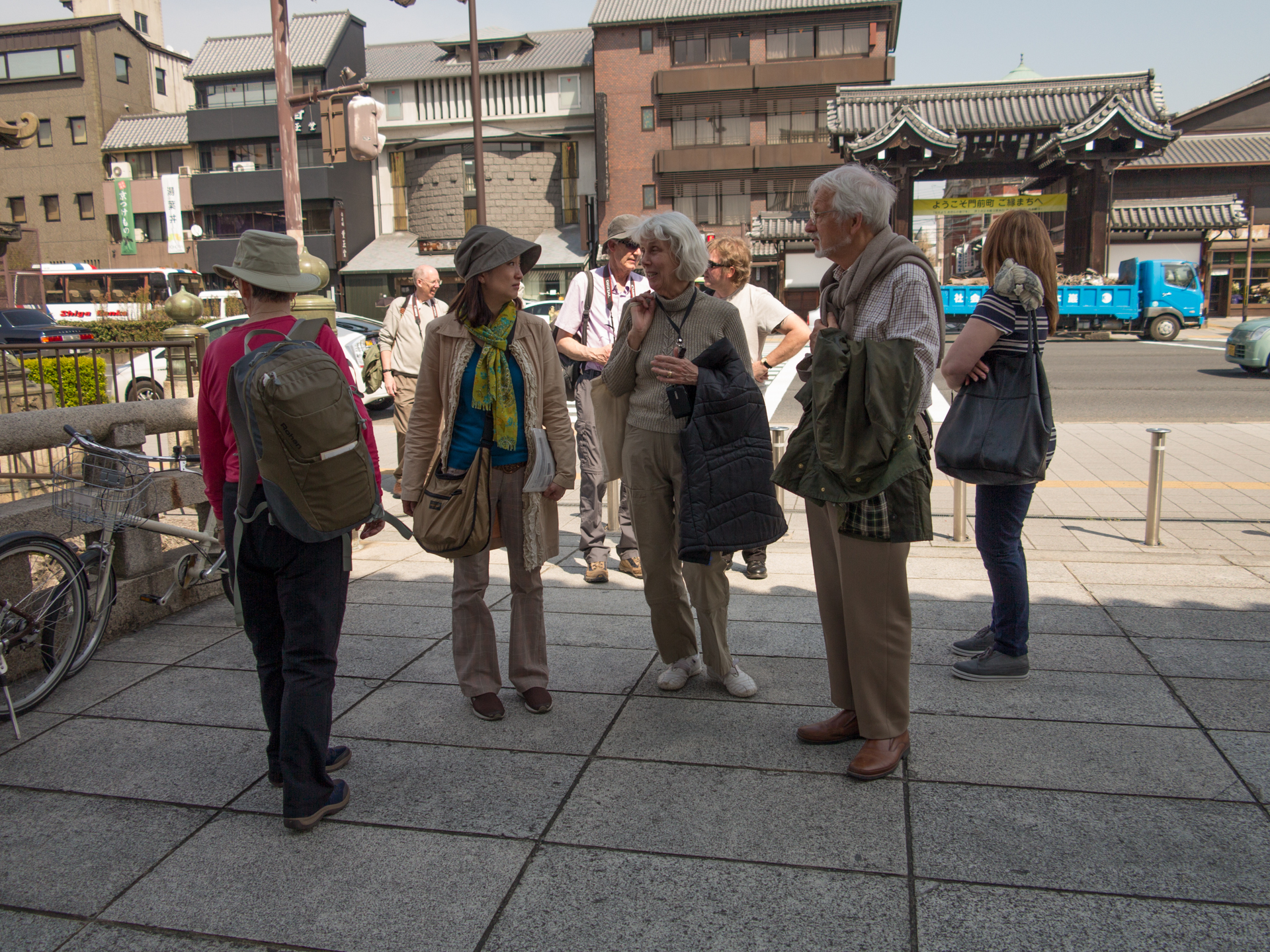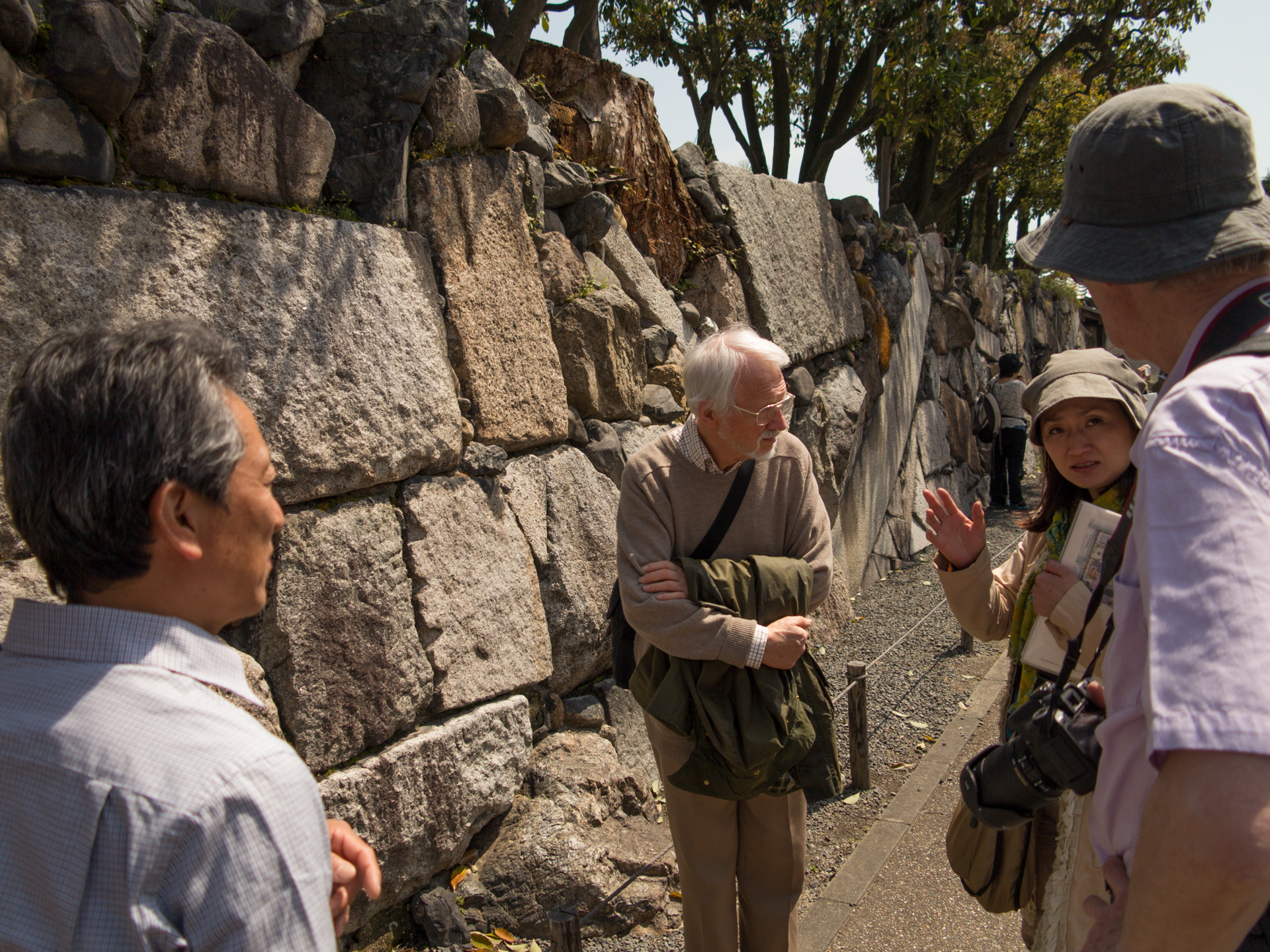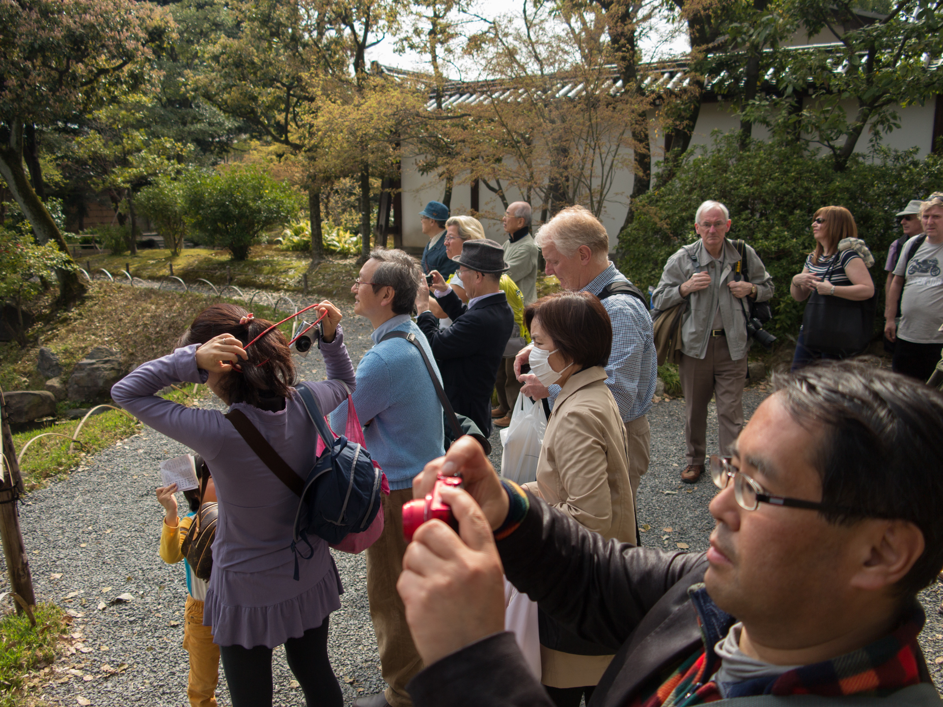 Under vår rundvandring i Kyoto blev vi guidade av Nori, Junior och Hiro-sam (minns inte hans fullständiga namn). Nori är en japansk trädgårdsdesigner som fått sin utbildning i England. Hon berättade att hennes intresse för japanska trädgårdar kom först när hon studerade i England. Innan dess tyckte hon de var tråkiga och längtade mer efter det exotiska europeiska trädgårdsidealet. På grund av hennes tid i England fick hon översätta vad som sades mellan engelska och japanska. Junior och Hiro är trädgårdsmästare med mångårig erfarenhet av praktiskt arbete. Junior pratar en del engelska medan Hiro inte gärna gör det.