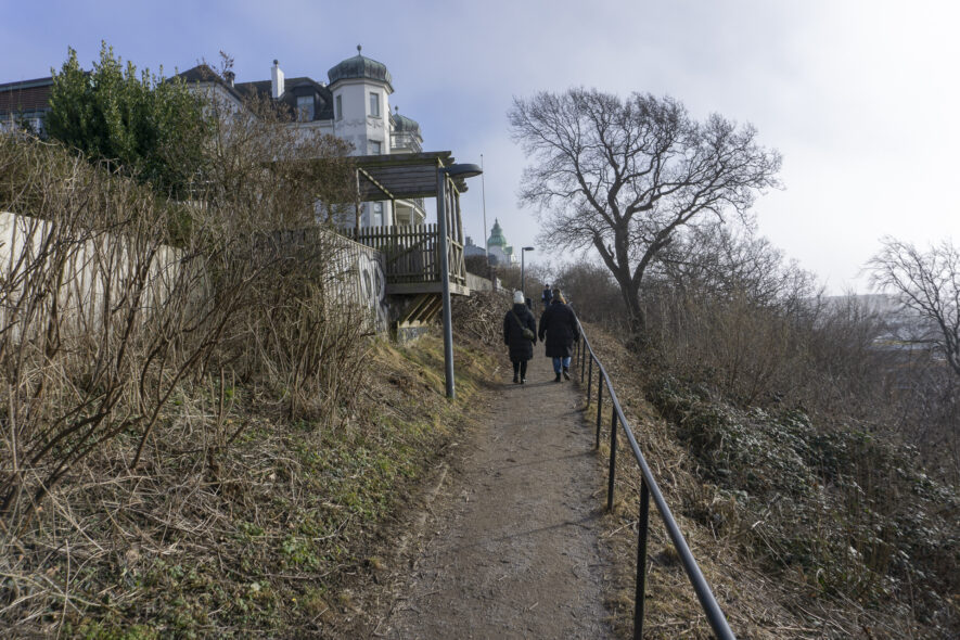Mellan Helsingborg och Domsten är det 14 kilometer och mellan Domsten och Höganäs 11 kilometer vilket ger totalt 25 kilometer. Turen börjar på Knutpunkten i Helsingborg och en klättring upp till Kärnan på landborgen. Skåneleden följer landborgen norrut genom Helsingborg upp till Pålsjö skog och vidare förbi Sofiero slott där leden går ner till kusten och följer denna hela vägen upp till Höganäs. I Domsten finns lägerplats och vindskydd med torrdass för att rasta eller övernatta. På vägen passeras tre mysiga hamnar i Domsten, Viken och Lerberget med kafé och toaletter. Fyra trevliga naturreservat passeras, Pålsjö skog, Kulla Gunnarstorp, Domsten-Viken och Väsby strandmark.