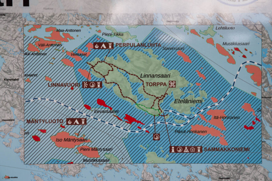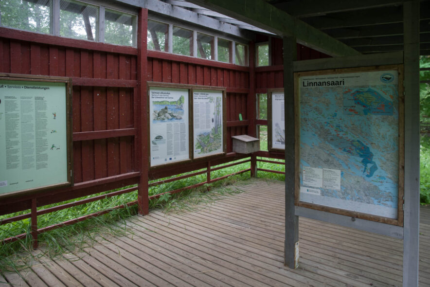 I det stora sjölandskapet i östra Finland finns flera nationalparker och detta är en som enbart består av skärgård dit det krävs båt för att komma. Jag hade tur att det fanns reguljär förbindelse till ön Linnansaari under sommaren och att en tur fanns kvar för dagen då jag anlände. En liten öppen båt tog mig i duggregn över den ganska blåsiga sjön till ön. Väl framme fick jag nästan två timmar innan det var dags för återfärd. Den mest spännande arten är insjösälarna som endast finns några hundra kvar idag. Efter regnet blev det fint ljus på eftermiddagen men också mycket mygg. På ön finns ett fint kulturlandskap i söder vid bryggan och ett mer vilt skogslandskap med många spår efter svedjebruk.