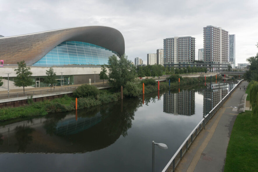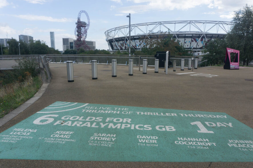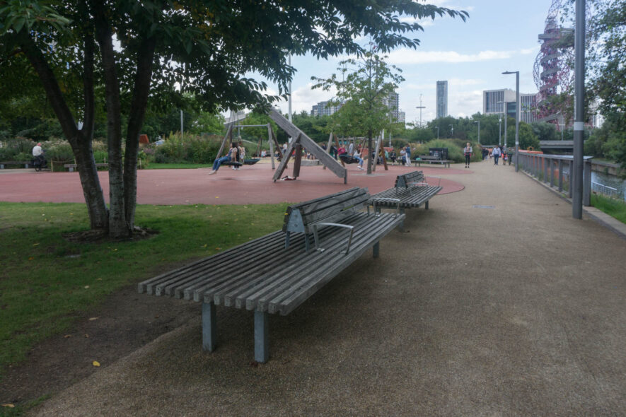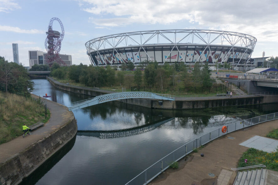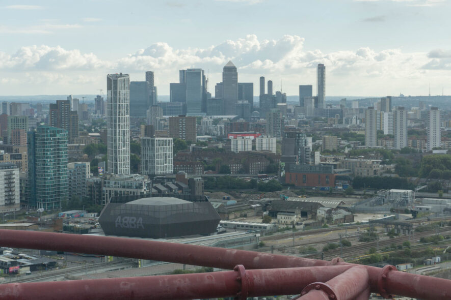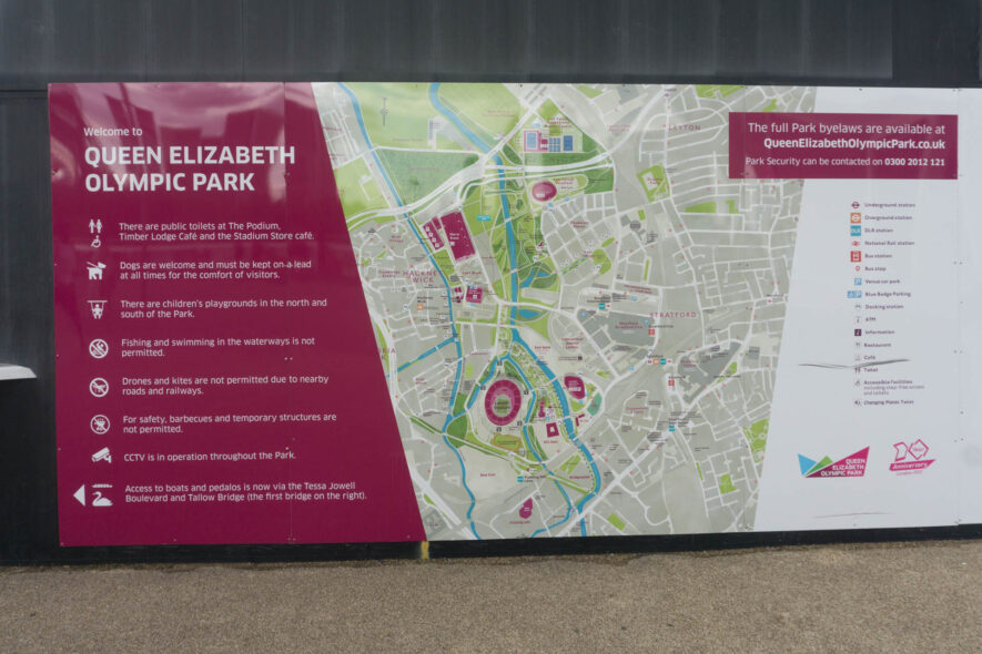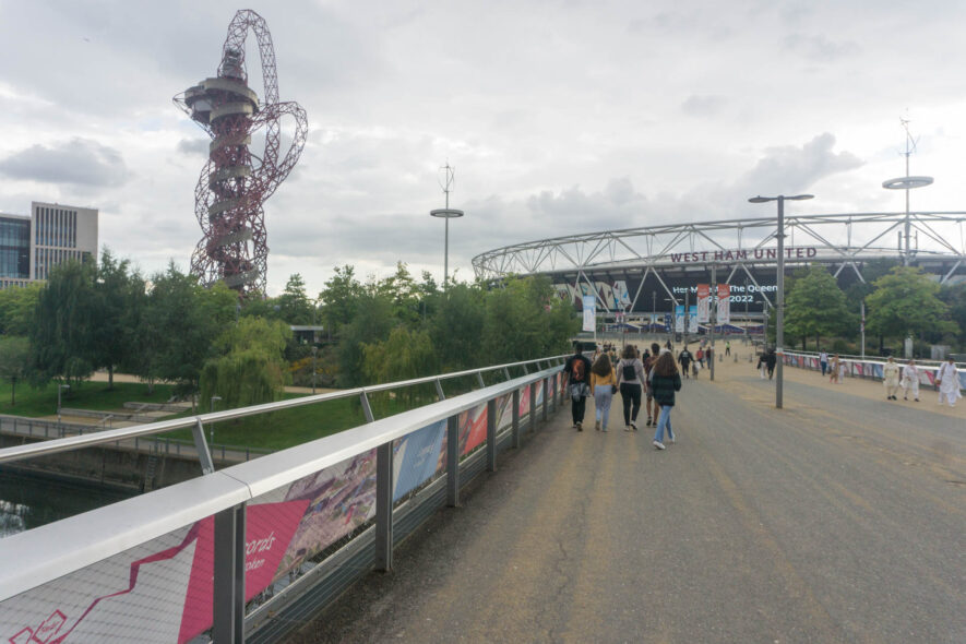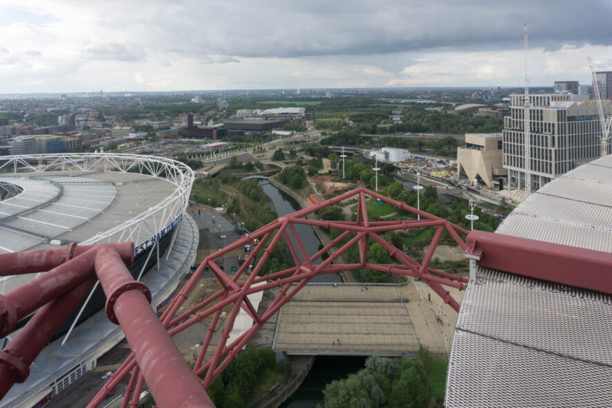 Området kring OS arenorna från 2012 har utvecklats till en stor park i nord-sydlig riktning samt omfattande stadsutveckling i öster mot Stratford station. Parken är mer formell i södra delen kring arenan och blir naturlik längre norrut. I parken finns också inslag av kanaler och dammar. Delar av parken håller på att utvecklas för bostadsområden i kanterna. Mellan parken och Stratford stationen har en stor stadsdel utvecklats med en enorm shoppinggallria närmast stationen och främst bostäder längre bort. Från gallerian mot simarenan och stora arenan går ett trevligt gångstråk med många restauranger. Från OS finns den stora stålkonstruktionen kvar som utsiktstorn och världens längsta rutschkana. Tornet är högre än frihetsgudinnan och ger fin utsikt över denna del av London. Tyvärr är många av utsiktsplatserna i London väldigt dyra och bland annat Shardskrapan och det stora hjulet vid Themsen London Eye kostar över 35 pund (närmare 500 kronor) för inträde. Här var kostnaden mer blygsamma 12 pund.