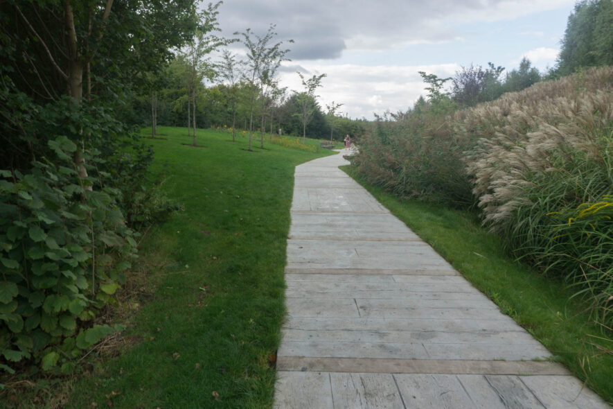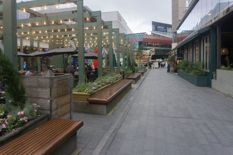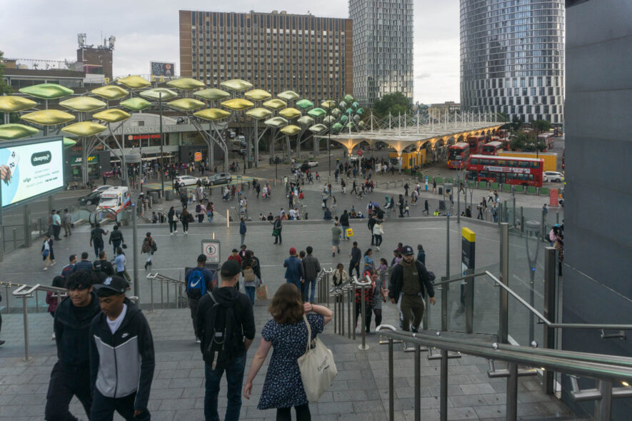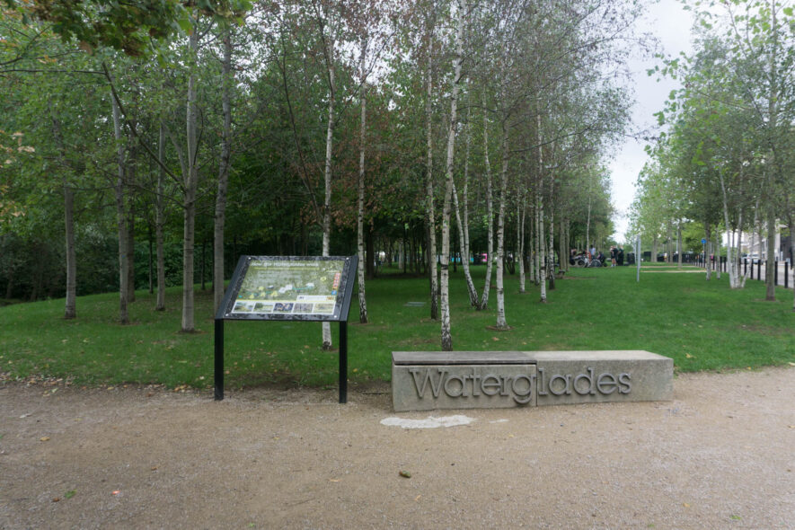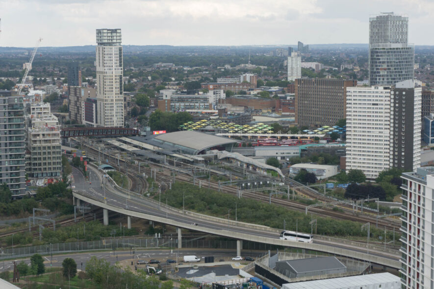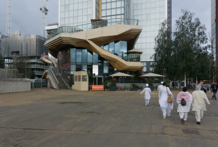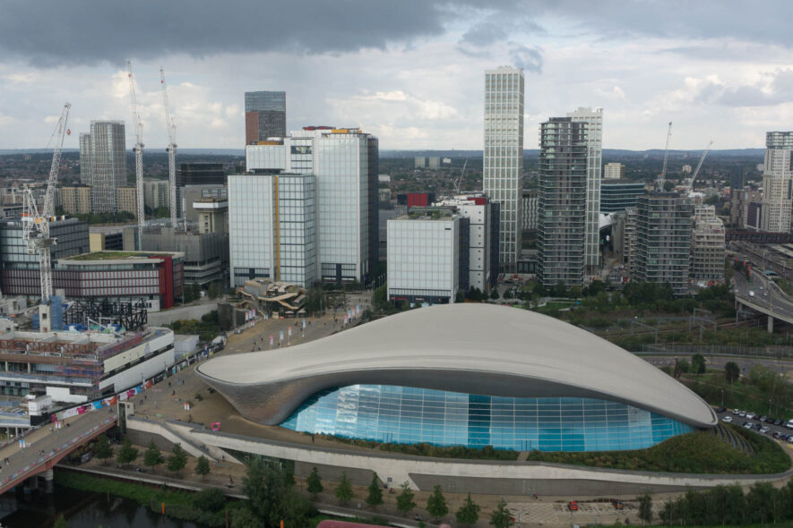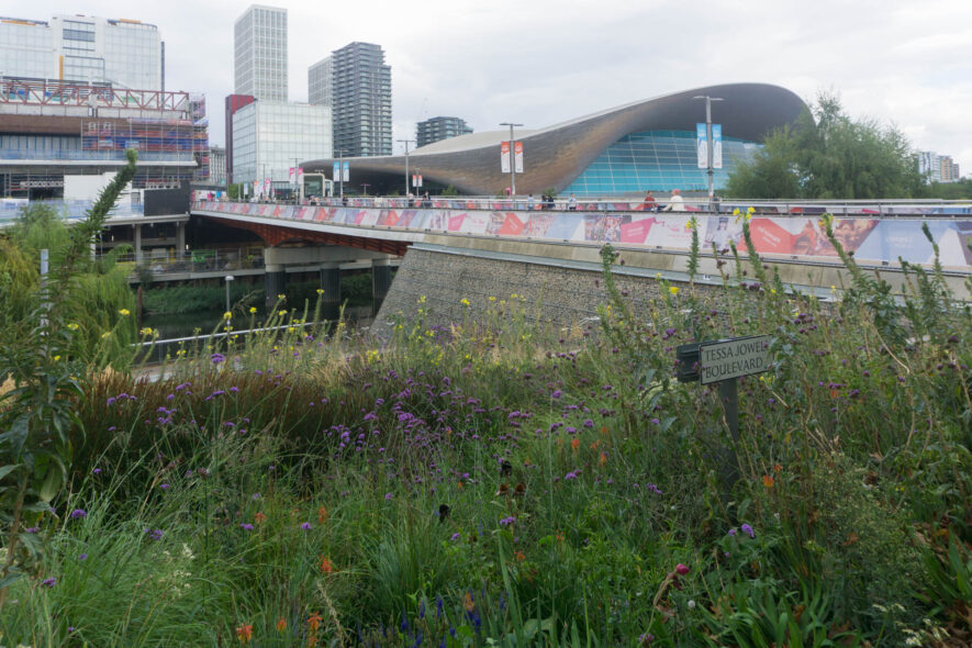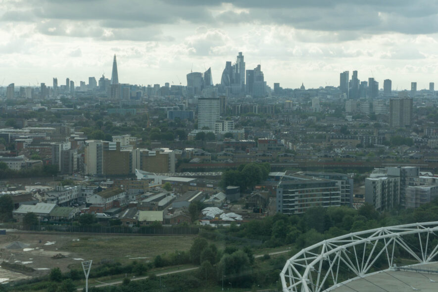 Området kring OS arenorna från 2012 har utvecklats till en stor park i nord-sydlig riktning samt omfattande stadsutveckling i öster mot Stratford station. Parken är mer formell i södra delen kring arenan och blir naturlik längre norrut. I parken finns också inslag av kanaler och dammar. Delar av parken håller på att utvecklas för bostadsområden i kanterna. Mellan parken och Stratford stationen har en stor stadsdel utvecklats med en enorm shoppinggallria närmast stationen och främst bostäder längre bort. Från gallerian mot simarenan och stora arenan går ett trevligt gångstråk med många restauranger. Från OS finns den stora stålkonstruktionen kvar som utsiktstorn och världens längsta rutschkana. Tornet är högre än frihetsgudinnan och ger fin utsikt över denna del av London. Tyvärr är många av utsiktsplatserna i London väldigt dyra och bland annat Shardskrapan och det stora hjulet vid Themsen London Eye kostar över 35 pund (närmare 500 kronor) för inträde. Här var kostnaden mer blygsamma 12 pund.