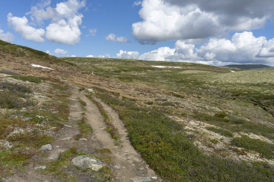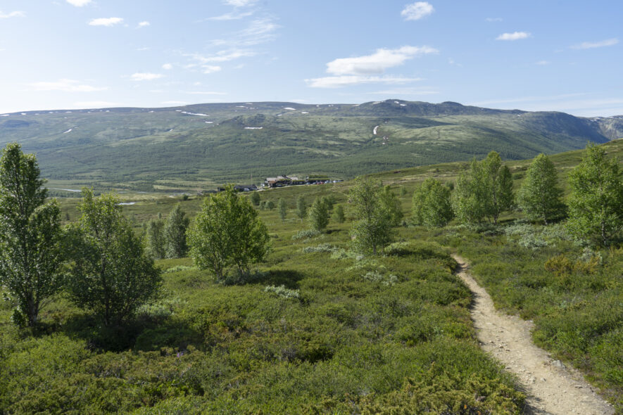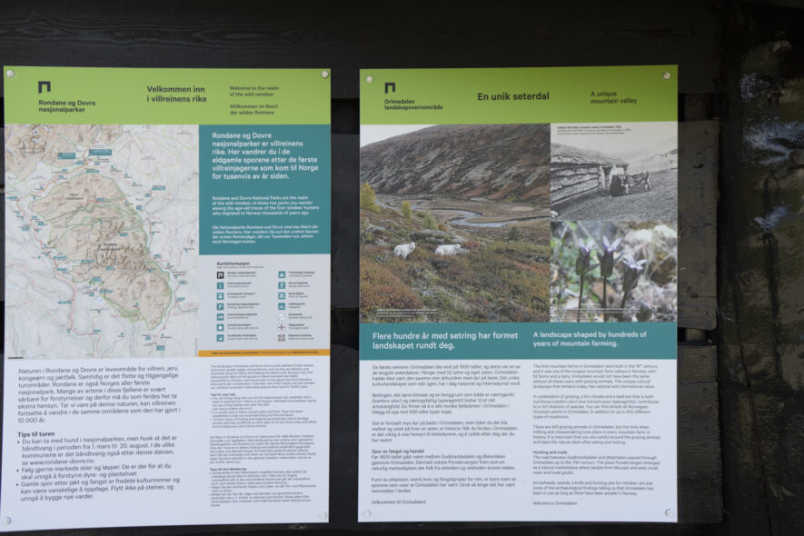 Tre nationalparker ligger på rad med smala dalgångar som avgränser dem från varandra, Dovrefjell-Sunndalsfjella, Dovrefjell och Rondane nationalpark. Den mellersta är Dovrefjell som jag valde att angöra från Grimsdalen i söder med Ronane på södra sidan. Vid fjällstationen Grimsdalshytta finns många vandringsleder in i de båda nationalparkerna. Norrut till Dovrefjell vandrar man i en brant dalgång upp mot det flacka fjället. I området finns den sydliga förekomsten av vildren och även flera av de stora rovdjuren. Jag fokuserade mest på floran och fågellivet med arter som blåhake, ängspiplärka, rödbena, ljungpipare, gök och stenskvätta. Fjällstationen ligger på 1000 meters höjd i trädgränsen och nere i dalen finns möjlighet att tälta och ställa upp husbil. Bomvägen genom Grimsdalen går högt upp på fjället i den västra delen och sänker sig ner mot Grimsdalshytta och att sedan ytterligare sänka sig österut i dalgången.