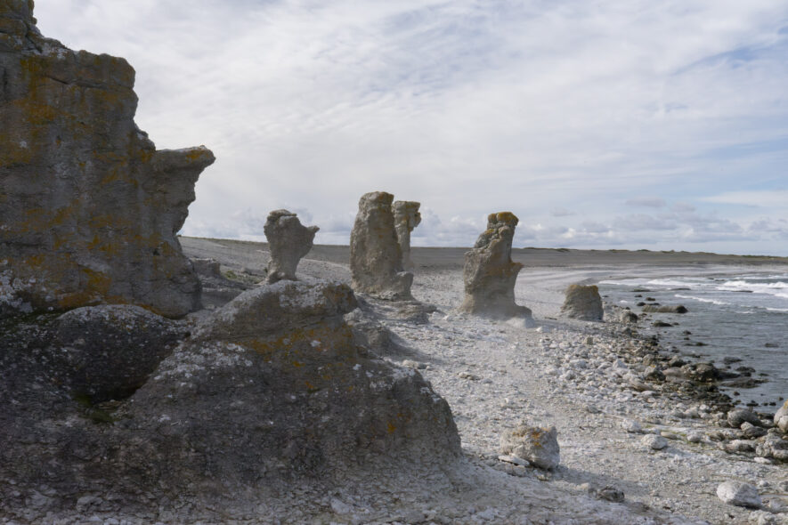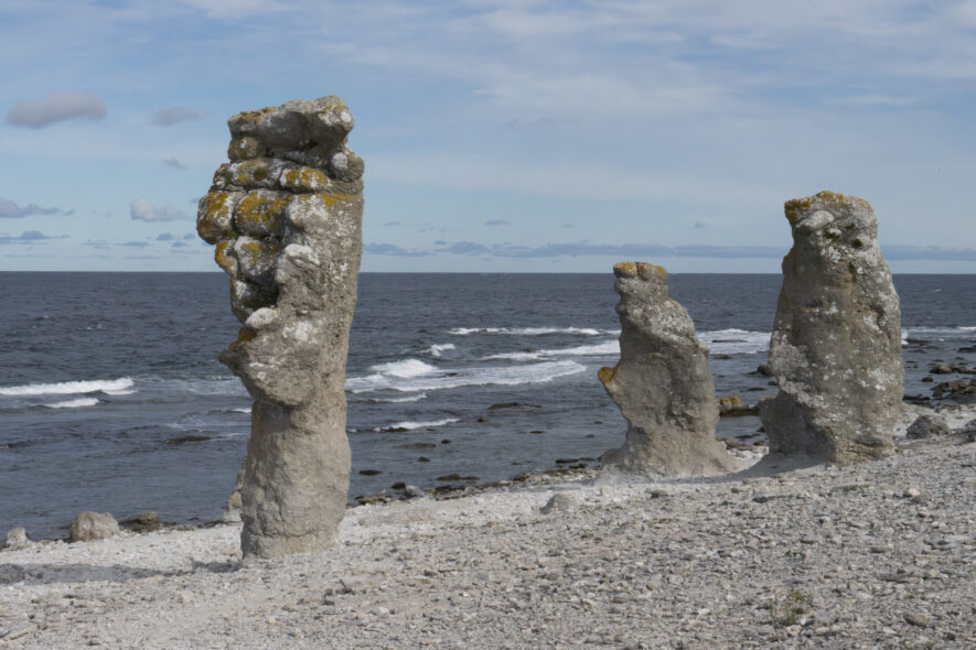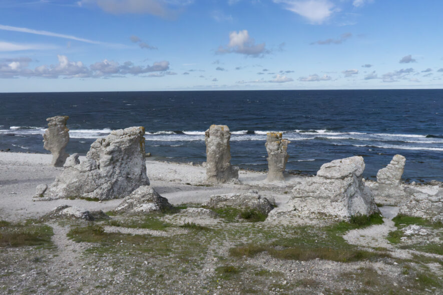 Längs västkusten på Fårö finns flera fina raukområden. Hårdare kalksten har eroderats fram i fantasifulla formationer som står som statyer längs stranden. En kustväg längs stranden gör det enkelt att besöka flera av raukområdena. Kusten är skyddad som naturreservat och de karga strandhedarna hyser en unik flora och fauna.