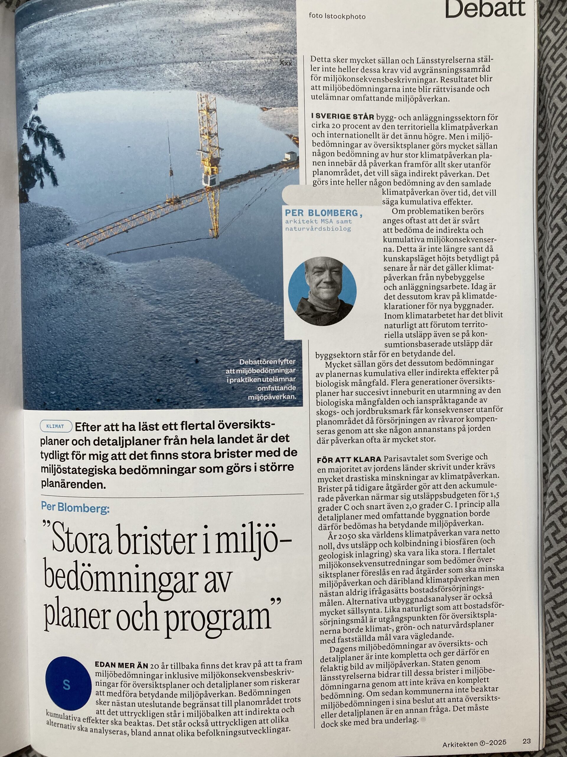 Den 4 november kom tidningen Arkitekten i brevlådan med min debattartikel om brister i strategiska miljöbedömningar av planer och program. […]