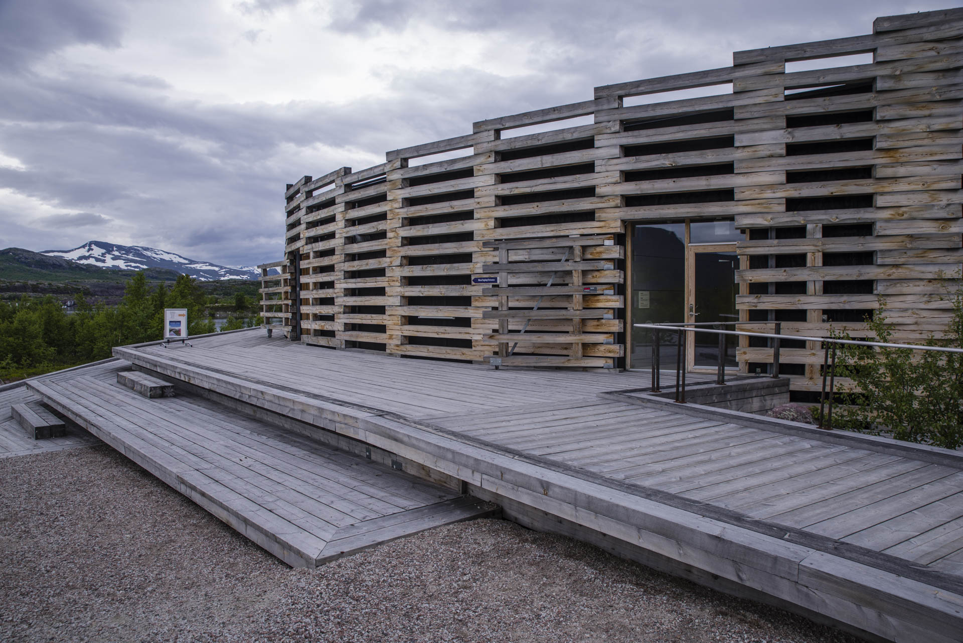 Sveriges senaste naturum är den vackra byggnaden i världsarvet Lapponia intill Stora Sjöfallet i nationalparken med samma namn. Byggnaden har inspirerats av samiskt byggnadsskick och traditioner och skyddar mot vädrets makter i en kringbyggd cirkelformad byggnad med innergård.
