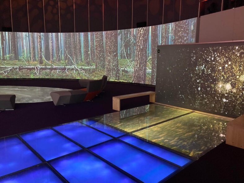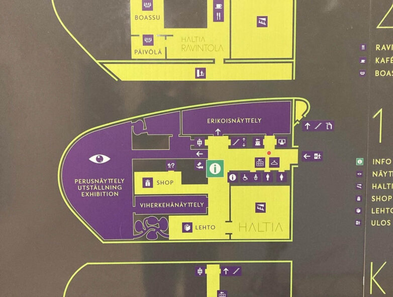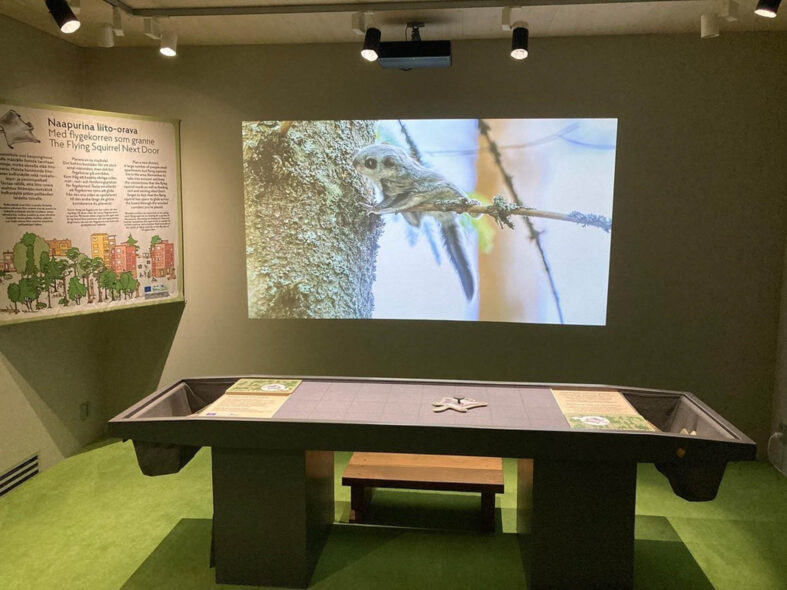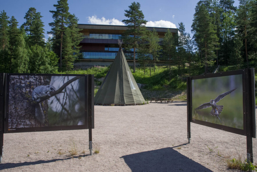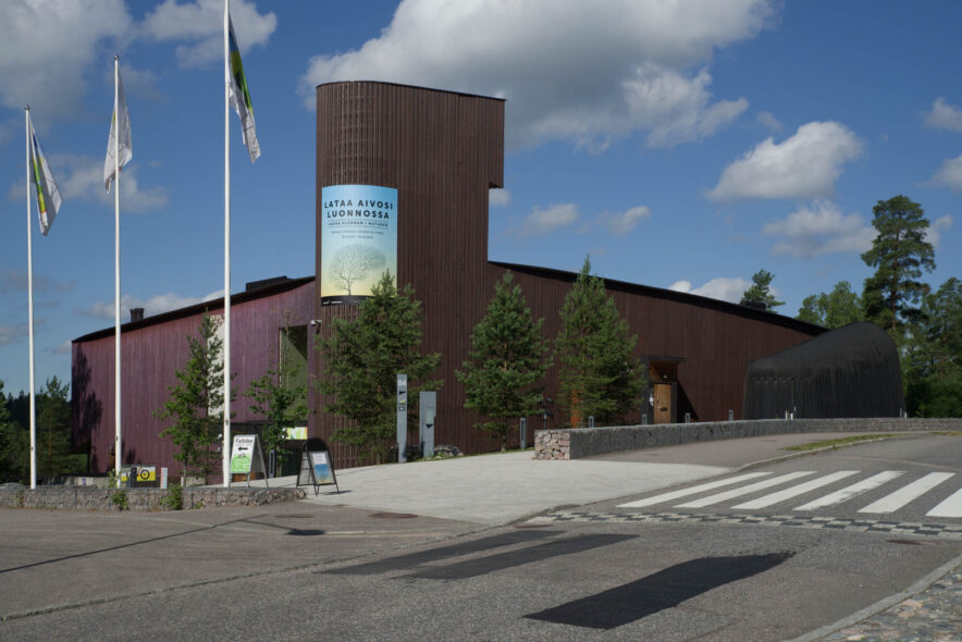 Intill nationalparken Nuuksio ligger naturcentret och nationalparkernas hus Haltia. Det är en spännande stor byggnad som möter en längs vägen upp till nationalparken. Här finns en mycket bra informationsdisk med hjälpsam personal, butik med naturprodukter, toaletter och ett kafé/restaurang på övervåningen. Utställningen kostar 13 Euro och har en permanent del och en tillfällig del. Den permanenta utnyttjar senaste tekniken och ger en visuellt spännande upplevelse med enormt vid skärm i stora salen, projicering på golv och tak, interaktiva skärmar och mycket för barn att upptäcka och krypa in i. För mig som förväntat mig information om Finlands nationalparker blev besöket en stor besvikelse. En karta med alla parker utmarkerade var allt. Även informationen om naturen i Finland var mer visuell än informativ. 13 Euro kändes inte motiverat för mitt besök, särskilt som vi är vana vid att alla naturum är gratis i Sverige. Byggnadens baksida är än mer imponerande då terrängen sluttar starkt åt väster. På ytan nedanför fanns vid mitt besök en fotoutställning med finska naturfotografer som var intressant.