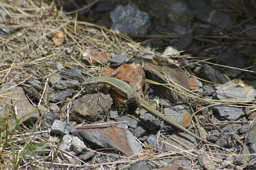 Pyrenéerna 2005. En av tre närsläktade ödlor i olika delar av Pyrenéerna. Namnet har den fått från sin utbredning i dalgången d´Aran i Spanien och topparna Ariége i Frankrike. Det är en ganska anspråkslös ödla med olika bruna nyanser och ibland inslag av grönt. De håller till i steniga områden, ofta nära vattem från 1700 meters höjd till 3000 meter. Aktiva från maj till september men varierar i aktivitet med väder. Arten är listad som hotad enligt IUCNs lista för Europas reptiler.