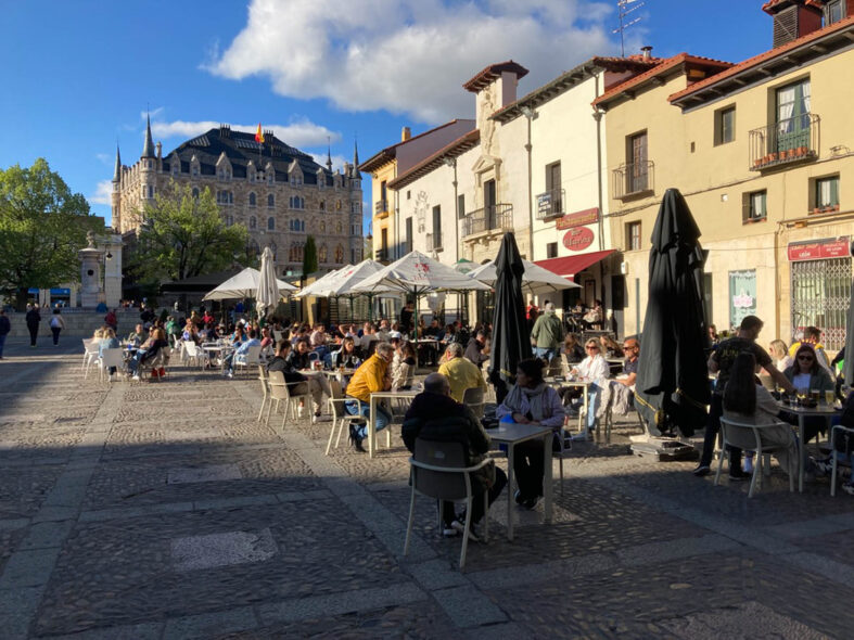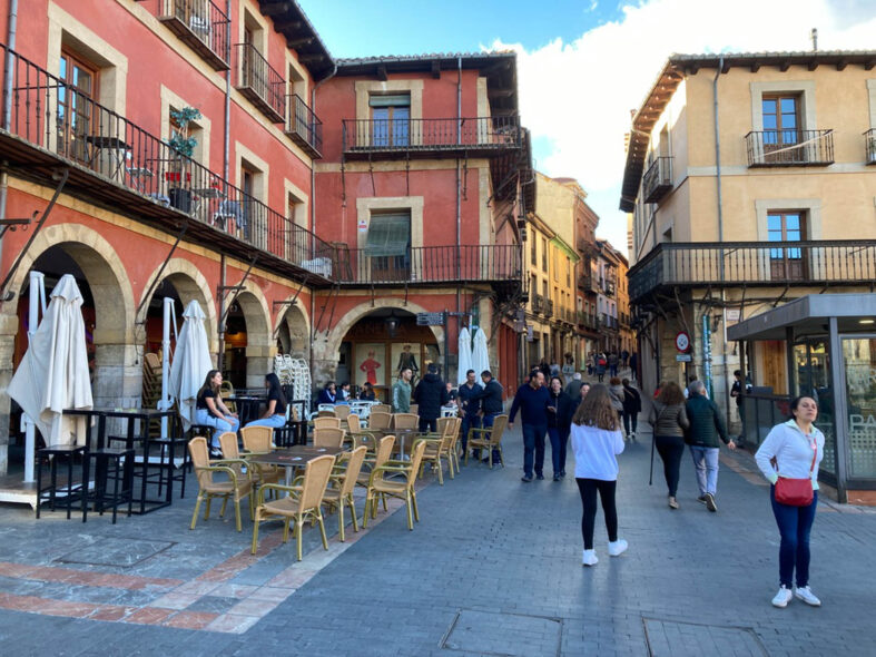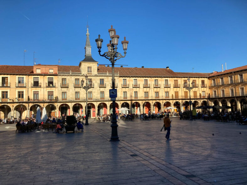 Staden där jag tillbringade ett år 1995-1996 för att studera spanska, botanik, zoologi och miljövård vid universitetet. Nu på återbesök för att träffa vänner från studietiden. Staden är sig lik men har samtidigt förändrats betydligt. Centrala staden är mer gåvänlig med ett sammanhängande gågatenät och genomfartsgatorna är borta. Staden har fått en ny modern station med snabbtåget AVE. Här är fler pilgrimsvandrare än vad jag minns från slutet av 1900-talet. Just denna helg den 15-16 april är det mycket folk ute i gamla stan (Barrio Humedo) och ett 10-tal grupper med möhippor och svensexor. Det verkar populärt att gifta sig på våren. De klassiska turistmålen som katedralen, Plaza Mayor, den romanska kyrkan San Isidoro och paradoren San Marcus är sig lika. Leon har ett lejon som symbol men kommer egentligen från den romerska Legion VII som grundade staden. Under medeltiden var Leon ett tag huvudstad i det spanska rike som höll på att återerövra halvön från morerna. Det var därför som flera ståtliga romanska kyrkor uppfördes. Delar av den medeltida stadsmuren finns kvar. Staden har sedan växt och har idag 126 000 invånare och kan liknas vid Lund där jag bor.