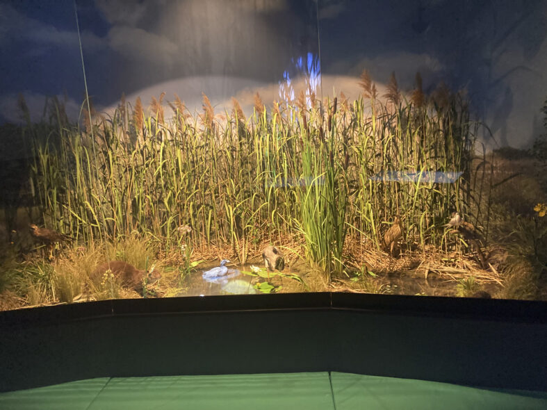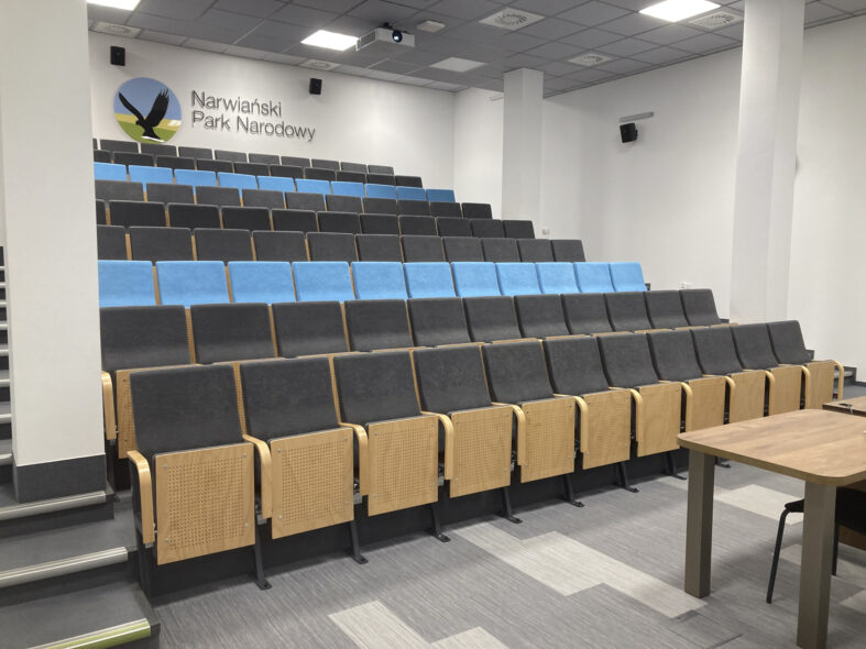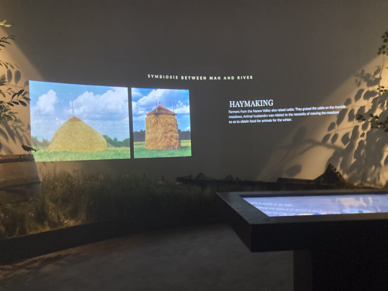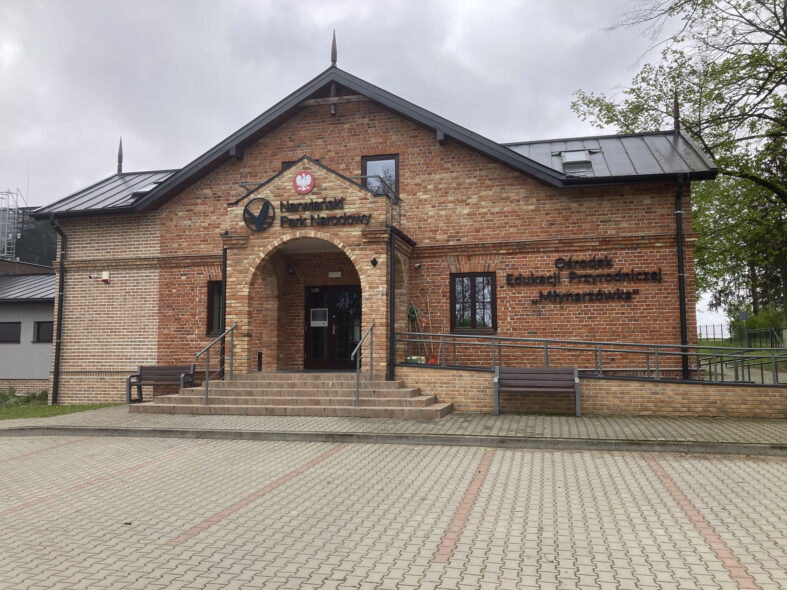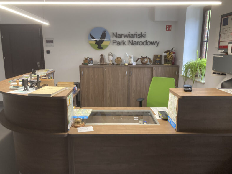 800 meter norr om byn Kurowo ligger en gammal kvarn som idag är kontor och besökscenter för nationalparken. Här kan man också köpa inträdesbiljett till nationalparken vilket krävs för besök. Även utställningen kostar pengar att besöka men var väl värt detta då det är en av de bättre jag besökt i Europa. Jag var ensam besökare denna regniga och mycket kalla vårdag. Personalen förberedde den engelska visningen och jag kunde inleda med en mycket bra film i den stora åhörarsalen. Sedan fortsatte programmet med en genomgång av de olika karaktärsarterna i en stor monter med återskapat landskap. Varje art belystes och presenterades på en skärm med engelskt tal och bilder. Tredje programpasset var ett fågeltorn som man gick upp i och där en rund skärm runt tornet projekterade gryningen över våtmarkerna där olika naturljud presenterades allt eftersom det ljusnade. Fjärde passet var en bäverhydda där en skärm berättade i ord och bild om deras liv. Femte stoppet blev en film om alla artgrupper som finns i området och den sista presentationen var om kulturlandskapet och människans relation med naturen i området. Jag var mycket imponerad av utställningen och dess pedagogiska upplägg samt att allt presenterades på utmärkt engelska.