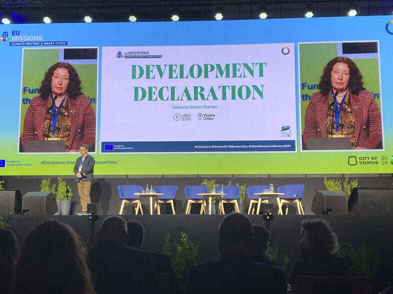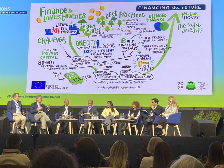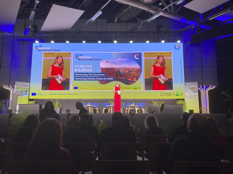 Den 6-8 maj hade jag möjlighet att delta på EU:s konferens för de 112 Europeiska städer som går före i arbetet mot klimatneutralitet år 2030. Det var cirka 460 delegater från städer och organisationer som träffades på konferensanläggningen Litexpo i utkanten av Vilnius. Det blev två och en halv späckade dagar med ett 80-tal olika sessioner i både plenum och mindre grupprum. Den sista eftermiddagen erbjöds studiebesök och jag valde att delta på cykelguidning i staden. Vilnius är Green Capital 2025 i Europa vilket bland annat var anledningen att konferensen ordnades här. Moderatorn heter Cathrina Moser och ledde oss mycket professionellt genom dagarna. Andra dagens höjdpunkt var de 53 städer som fick Mission label för sina handlingsplaner mot klimatneutralitet, bland dessa fanns Lund och Helsingborg med flera svenska städer.