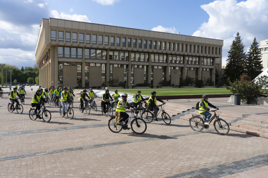 Sista dagen inleddes i stora hallen med paneldebatt och följdes av uppmärksamhet för Ukraina som hade en hel del representanter på plats och även en utställning i mässhallen. Jag deltog på en session med temat What can cities do about Scope 3 emissions? Den gav inte så väldigt mycket mer än att städerna Oslo, Paris, Amsterdam, Århus och Bristol fick berätta om sina framgångar. Konferensen avslutades med tal av Patrick Child från SCM och Julia Kelsz från IIF samt Matthew Ansins från EU kommissionen med flera. De flesta deltagarna hade flugit in till konferensen men några med mig hade åkt båt och den fiska delegationen åkte 9 timmar med buss från Helsingfors. Mest imponerande var en grupp från Holland som åkt tåg hela vägen till Vilnius. Som sagt avslutade jag med en studiecykletur under guidning och poliseskort genom Vilnius. Vi var ett 70-tal deltagare med gröna väster och cykelhjälmar i varma kläder som fick låna hyrcyklar några timmar. Vi avslutade vid stora torget intill katedralen. Jag vandrade sedan runt i gamla stan och fotograferade innan det var dags att återvända till hotellet och packa.