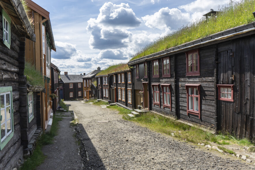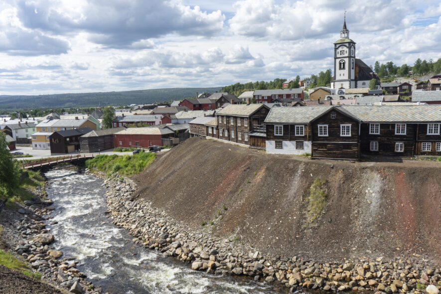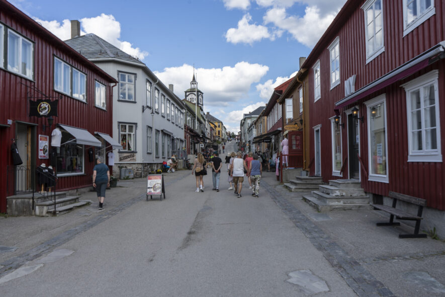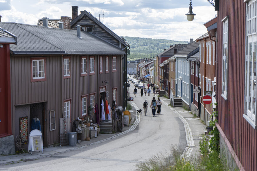 Den gamla gruvstaden Röros i östra Norge är världsarv för sin välbevarande industrimiljö och trähusbebyggelse. De centrala delarna har en ålderdomlig karaktär som bryts något av de många turister som befolkar gator, butiker och kaféer sommartid. Industrimiljöerna är tillgängliggjorda som museer och de stora slagghögarna är öppna för att klättra upp på och se på utsikten över staden. Det var trevligt att se hur väl det nya shoppingcentrat i centrums norra del anpassats till stadsbilden genom att brytas ned till många små byggnadskroppar för ett stort sammanhängande kvarter innanför. Staden har tågförbindelse och gör det lätta att uppleva staden till fots.