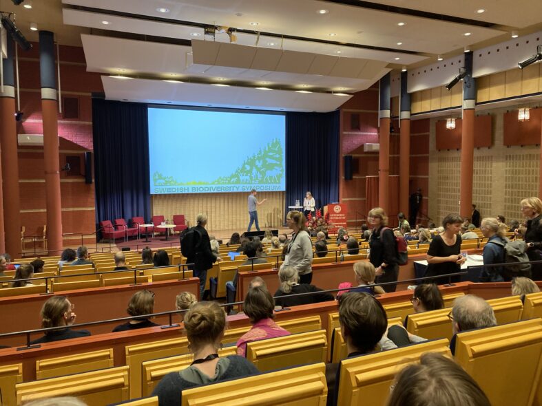För första gången anordnades Swedish Biodiversity Symposium i Göteborg för att samla både forskare och praktiker (främst strateger) till ett gemensamt arrangemang. Upplägget påminde mycket om Swedish Climate Symposium som SMHI har huvudansvar för vartannat år. Även här är det en rad forskningsinstitut och myndigheter som står som arrangörer. En bred organisation hade planerat de tre dagarna med fyra gemensamma sessioner i plenum och 28 mindre sessioner där man kunde delta på sex av dessa. Huvudtemat var samhällstransformation – från kunskap till handling. Arrangörerna blev mycket förvånade då att alla 350 biljetter tog slut innan ordinarie anmälningstid inträdde. Jag hade tur och blev en av de 419 personer som slutligen deltog på något sätt. Med andra ord kunde troligen betydligt fler ha deltagit om det funnits plats. Detta inger förhoppningar inför framtiden medan analyserna av Svenska naturvårdspolitik var minst sagt deprimerande under symposiet. Hela programmet var mycket intressant och de många pauserna gav möjlighet att besöka posters och träffa många gamla bekanta. Det är med stor förhoppning som jag ser fram emot nästa symposium om två år.
