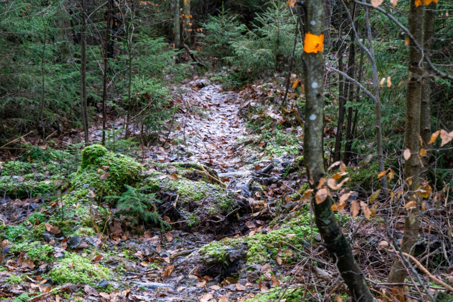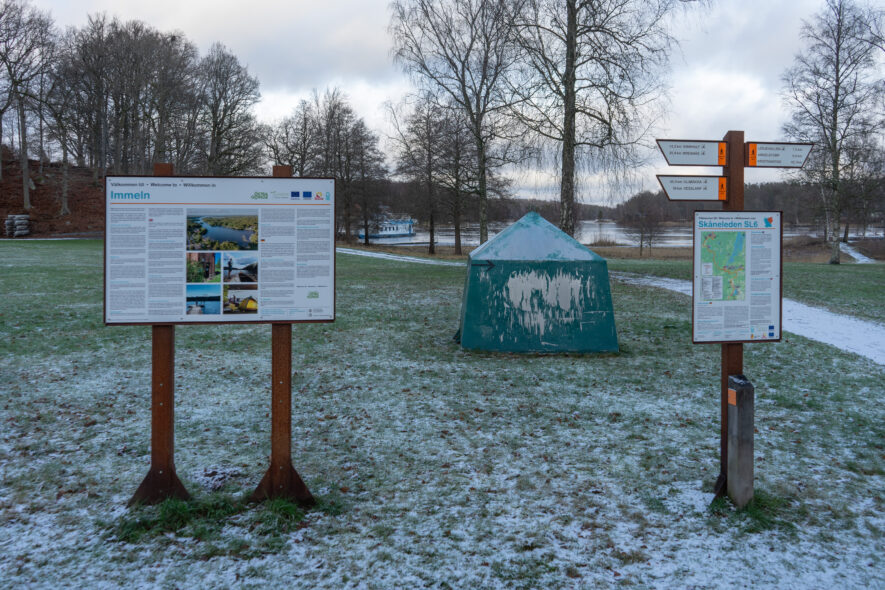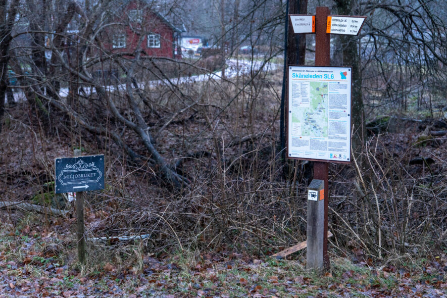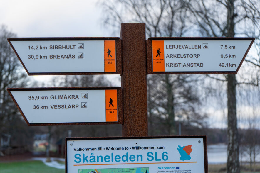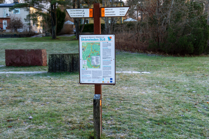 Som den sista dagsturen för att avklara alla etapper på nuvarande Skåneleden vandrade jag två etapper mellan Sibbhult till Immeln 14 km och till Arkelstorp ytterligare 10 km. Det var en solig och kall morgon som blev allt mer molnig under dagen med ca -1 grad C. Den första delen av leden går runt Sibbhult och sedan på grusvägar och över en höjdsträckning innan den når cykelvägen på den gamla banvallen som leden följer rakt fram enda till Immeln. Från Immeln börjar leden på cykelvägen på banvallen men viker av på grusvägar den sista delen fram till Arkelstorp. Det blev en lång vandring och med full packning bör dagsturen inte bli 24 km. Stora delar av leden går i skogslandskap så trots en kall nordlig vind var det relativt lugn på leden.