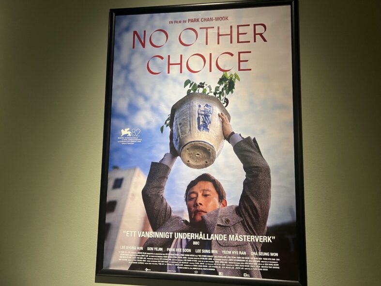 Park Chan-Wook är en sydkoreansk regisör som fått mycket uppmärksamhet för sina filmer internationellt. Den senaste filmen heter No other choice och tar upp det känsliga ämnet om arbetslöshet i Sydkorea. Särskilt mäns identitet är starkt knutna till arbetet och de gör nästan allt för sin arbetsgivare. Automatiseringen och AI gör att fler yrken blir överflödiga vilket kan driva de nyligen arbetsöverflödiga till drastiska åtgärder, i det här fallet till och med mord för att öka sina möjligheter till nytt jobb. Samtidigt skildras utmaningarna för familjen när ekonomin krisar och den höga levnadsstandarden hotas. Det är en omväxlande obehaglig och rolig film som berör. Det blir betyg 4 (av 5) i betyg. Sågs på Kino i Lund den 4 januari 2026.